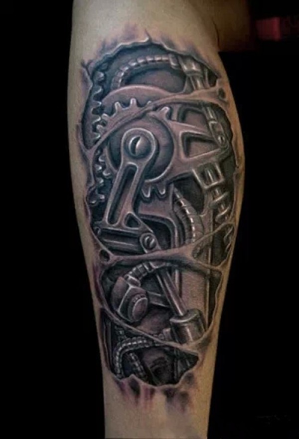 时尚3D立体机械腿纹身图案