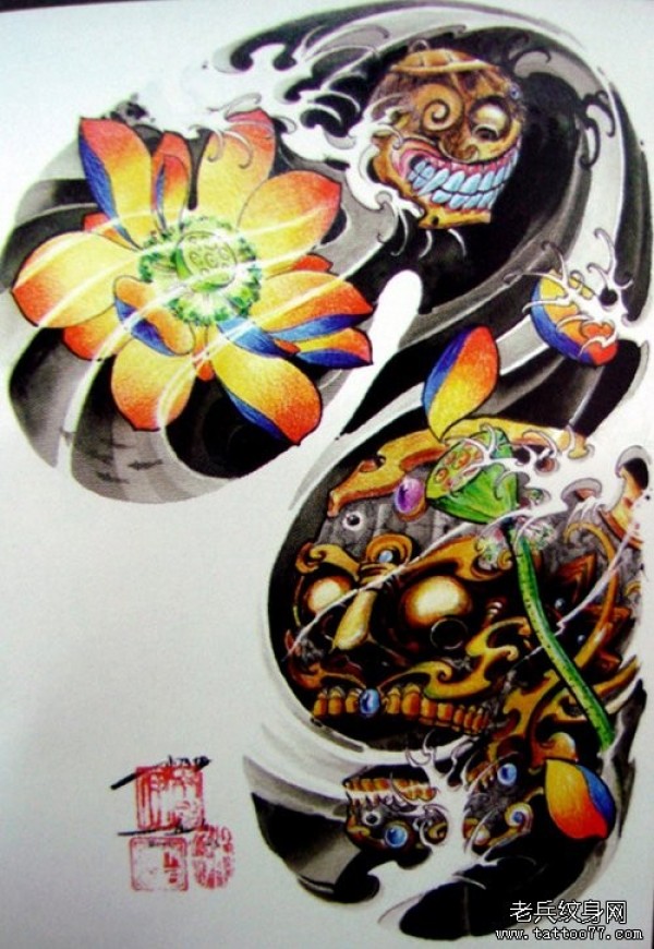 彩色半甲嘎巴拉纹身及手稿欣赏