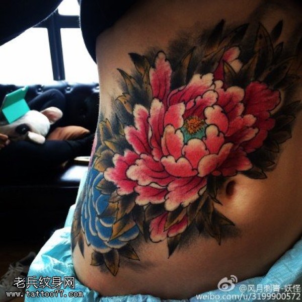 腰部的大牡丹纹身图案