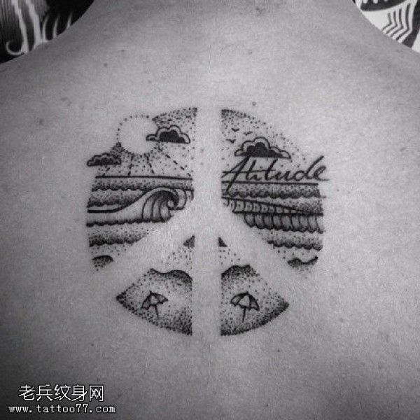 背部点刺的天空纹身图案