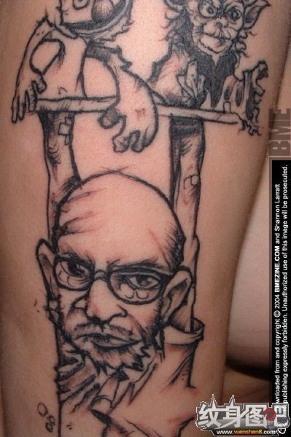 带黑框眼镜的老者纹身