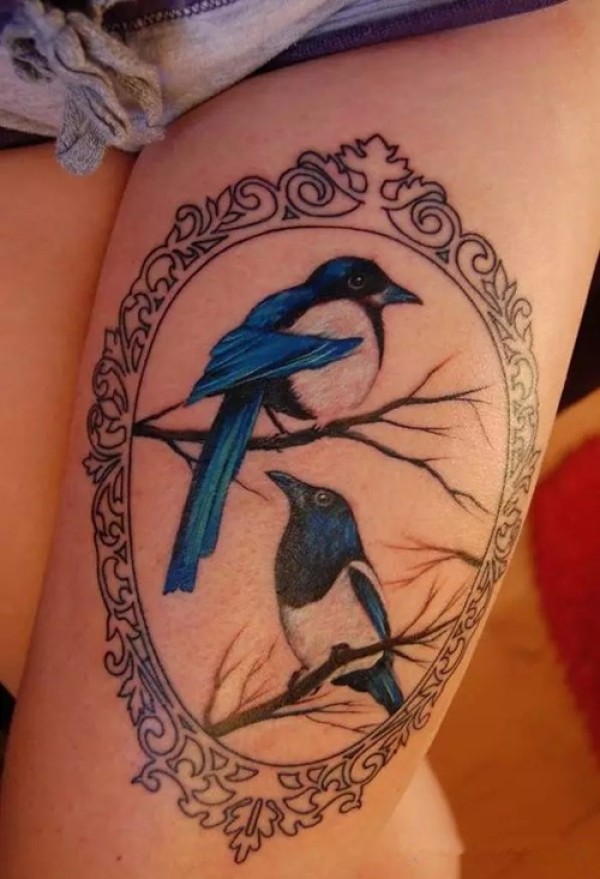 传统花腿纹身--18张传统风格的大花腿纹身图案作品