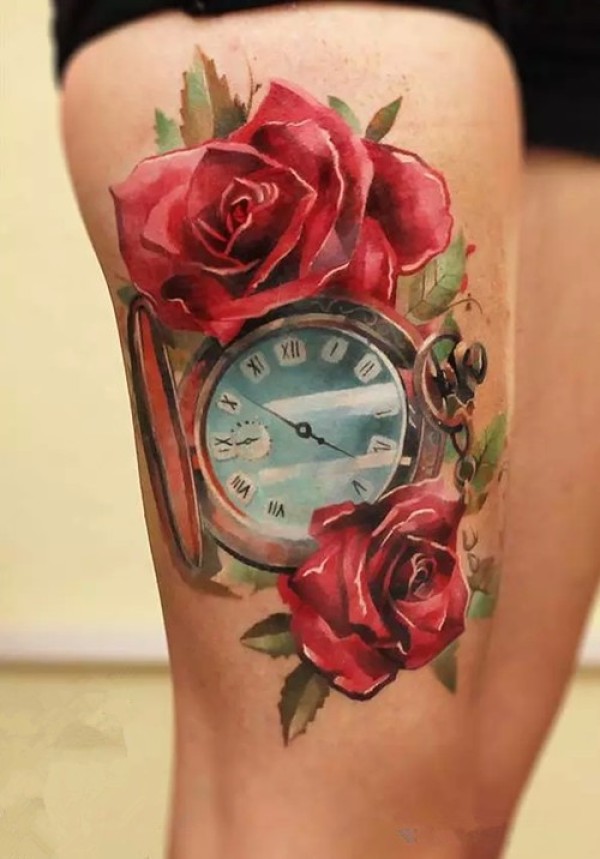 传统花腿纹身--18张传统风格的大花腿纹身图案作品