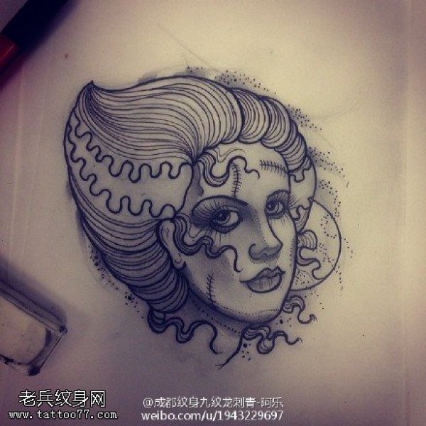 手稿素描欧美女子纹身图案
