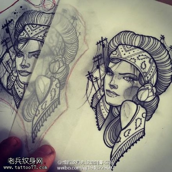 能面万媚纹身手稿_52张日式能剧面具纹身手稿图案素材欣赏