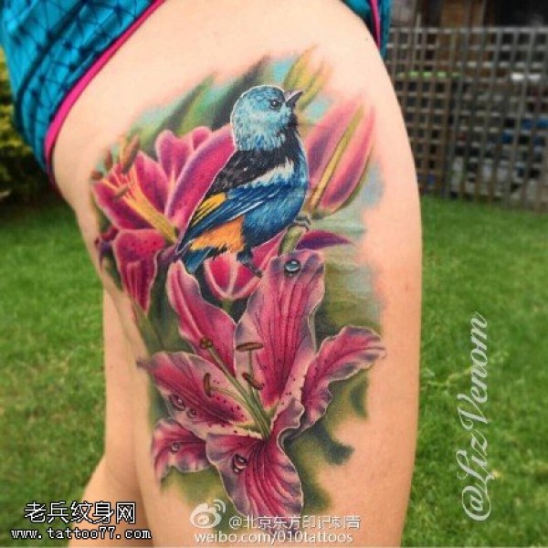 传统花腿纹身--18张传统风格的大花腿纹身图案作品
