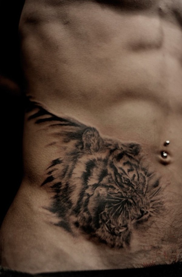 侧腰霸气老虎头纹身_腰部纹身图案大全_纹身图吧