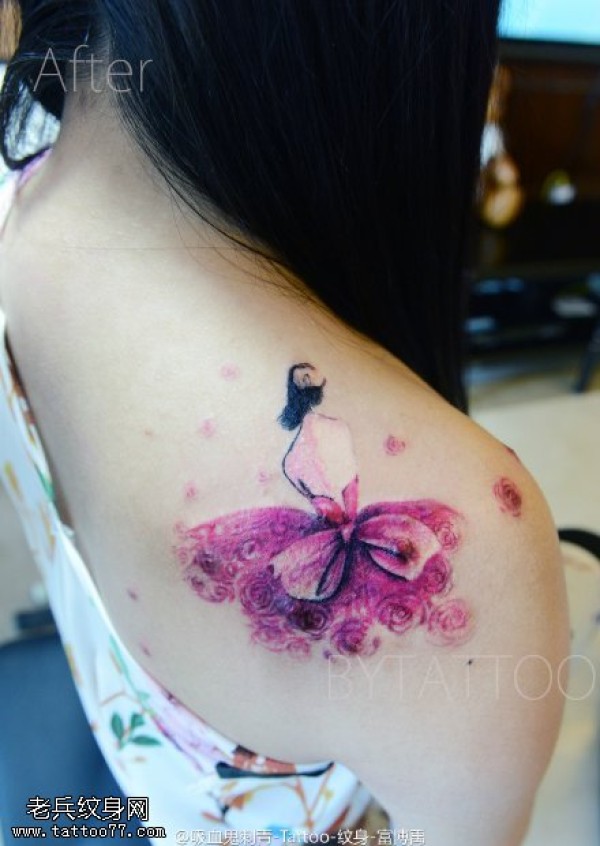 女生肩花纹身_15张女性双肩对称的肩花纹身图案作品图片