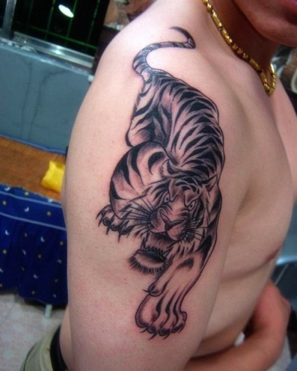 霸气半胛老虎纹身_动物纹身图案大全_纹身图吧