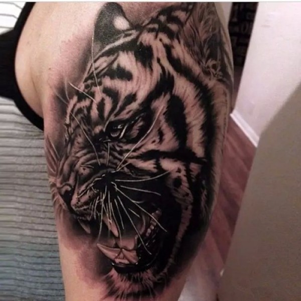 霸气半胛老虎纹身_动物纹身图案大全_纹身图吧