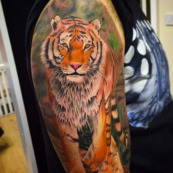 霸气半胛老虎纹身_动物纹身图案大全_纹身图吧