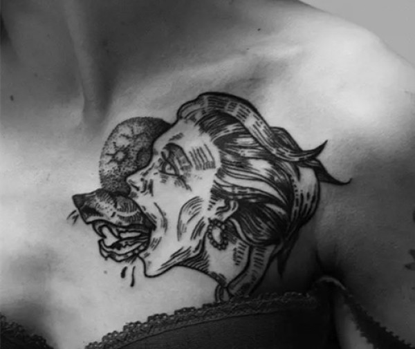 男生胸前经典的女性生殖器官纹身图案_胸部纹身图案大全_纹身图吧