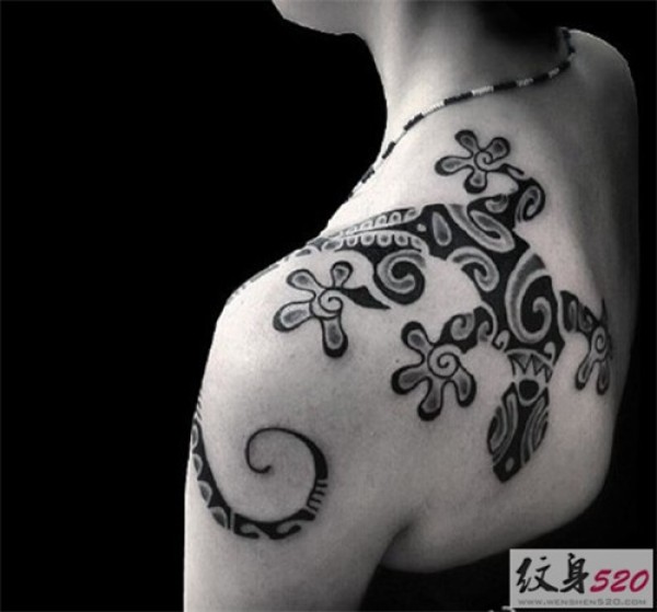 女生肩花纹身_15张女性双肩对称的肩花纹身图案作品图片