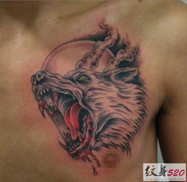 男士胸部凶狠狼头纹身图片