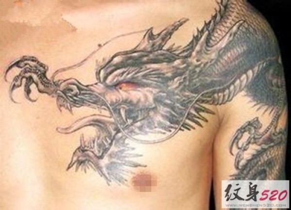 龙纹身手稿_一组老传统黑灰龙手稿纹身图案