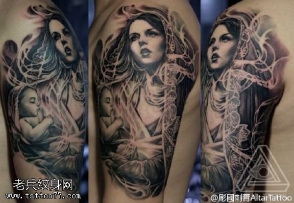女生肩花纹身_15张女性双肩对称的肩花纹身图案作品图片