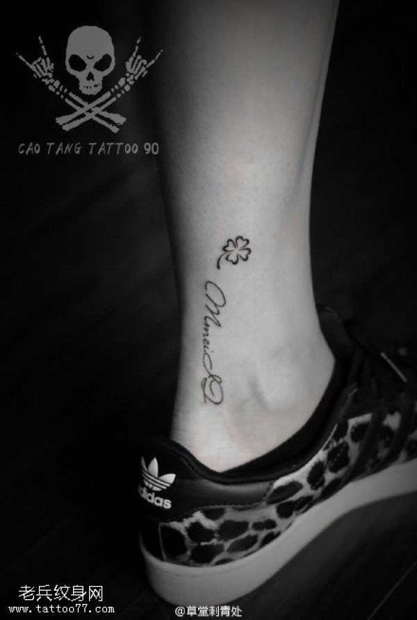 脚腕上的字符四叶草纹身图案