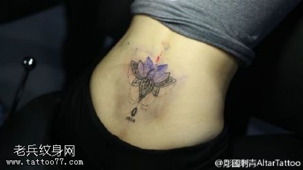 女性腰部莲花花纹刺青_腰部纹身图案大全_纹身图吧