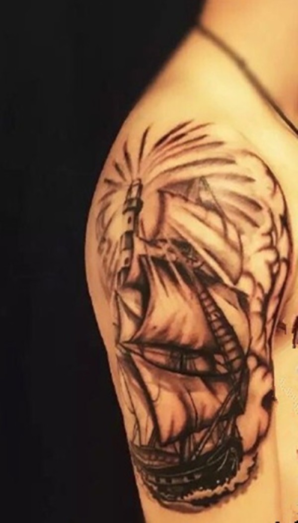 手臂上大气的帆船纹身