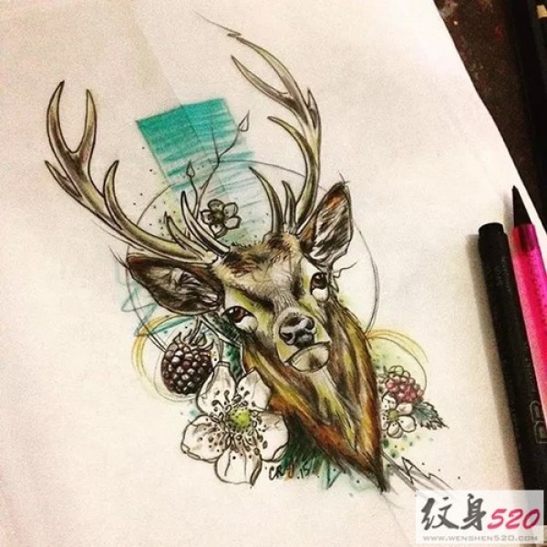 一组18张漂亮的欧美newschool动物纹身手稿图案