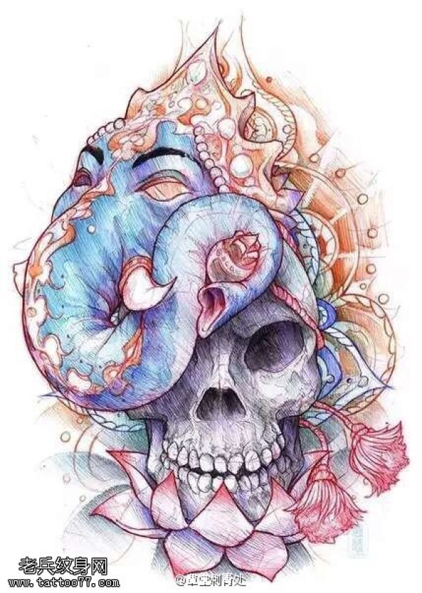 能面万媚纹身手稿_52张日式能剧面具纹身手稿图案素材欣赏