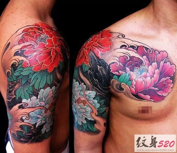 女生肩花纹身_15张女性双肩对称的肩花纹身图案作品图片
