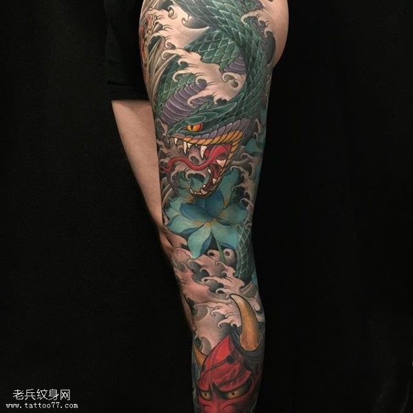 传统花腿纹身--18张传统风格的大花腿纹身图案作品