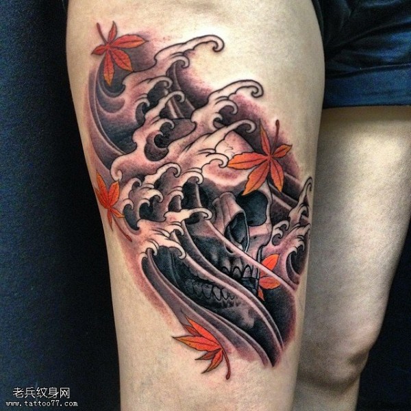 枫叶纹身骷髅文身彩色刺青_男士小图_骷髅纹身图案大全_纹身图吧