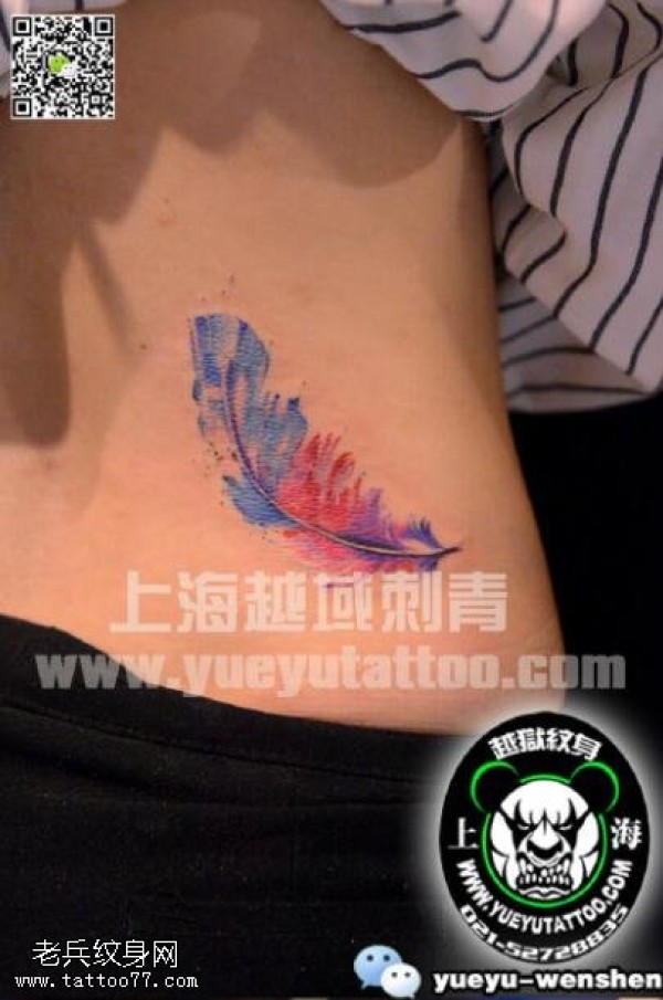 腹部漂亮的羽毛纹身图案