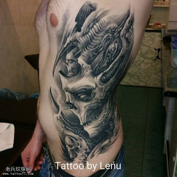 侧腹重口味骷髅纹身图案