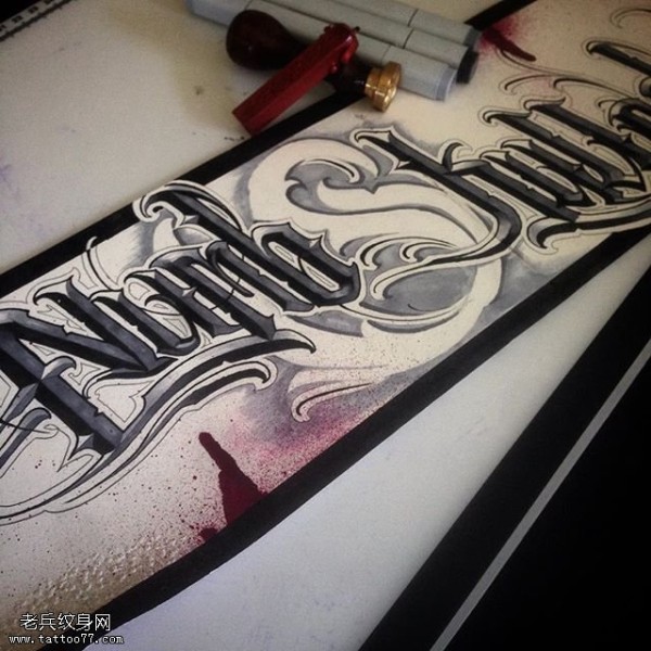 手稿花体字符纹身图案