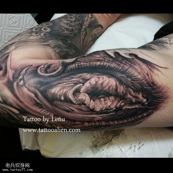胳膊上重口味眼睛纹身图案