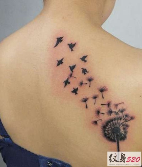 后肩唯美花藤英文图案图片_植物纹身图案大全_纹身图吧