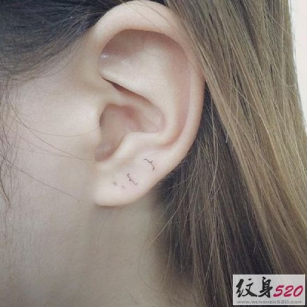 多款女生耳后黑色线条素描文艺小清新小图案纹身图案