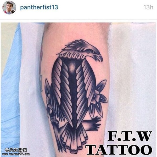 小腿的鹰纹身图案