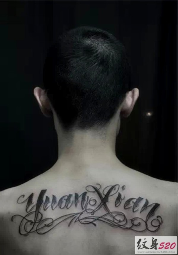 男士肩背部简单的英文纹身