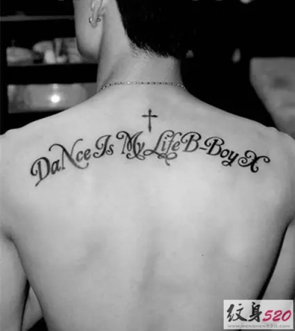 男士肩背部简单的英文纹身