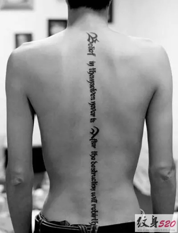 男士肩背部简单的英文纹身