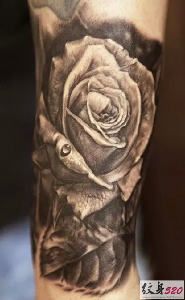欧美玫瑰纹身 男生手臂上花朵纹身图片