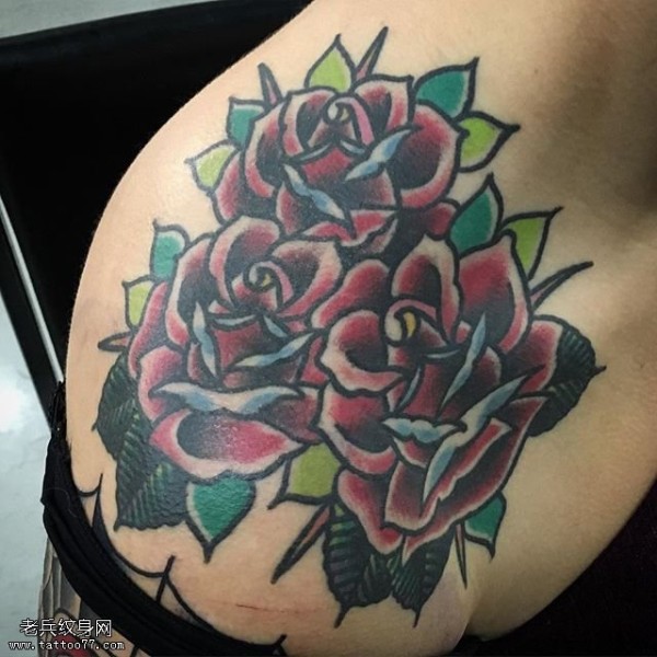 女生肩花纹身_15张女性双肩对称的肩花纹身图案作品图片