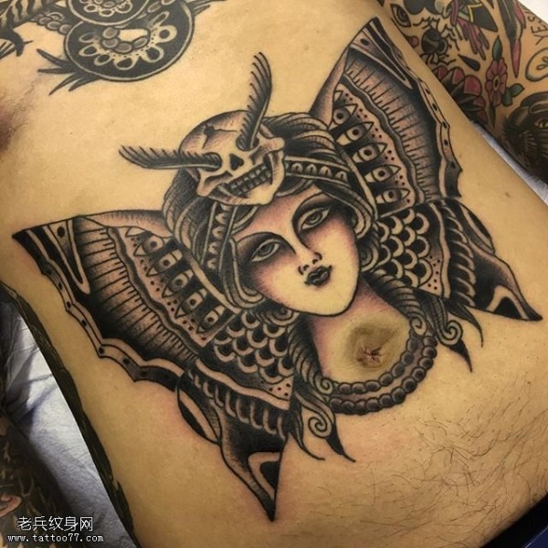 分享一款腰部时尚性感的蝶恋花纹身图案_腰部纹身图案大全_纹身图吧