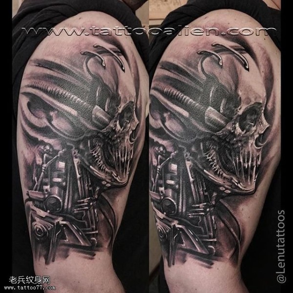 肩膀的机械骷髅纹身图案