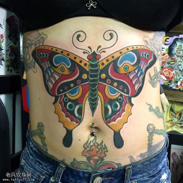 分享一款腰部时尚性感的蝶恋花纹身图案_腰部纹身图案大全_纹身图吧