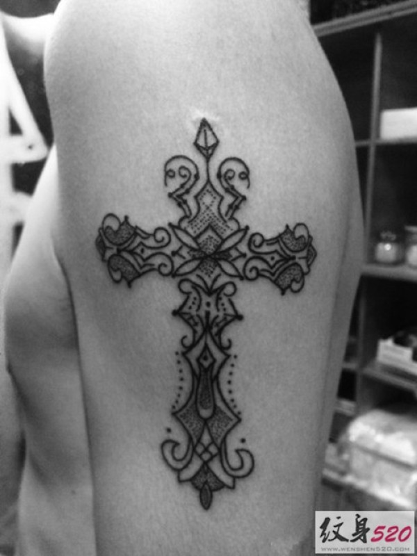 男士超爱的十字架纹身