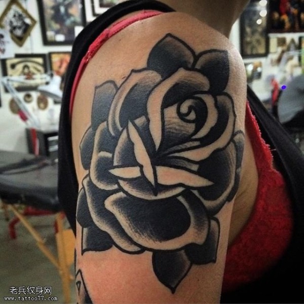 欧美玫瑰纹身 男生手臂上花朵纹身图片