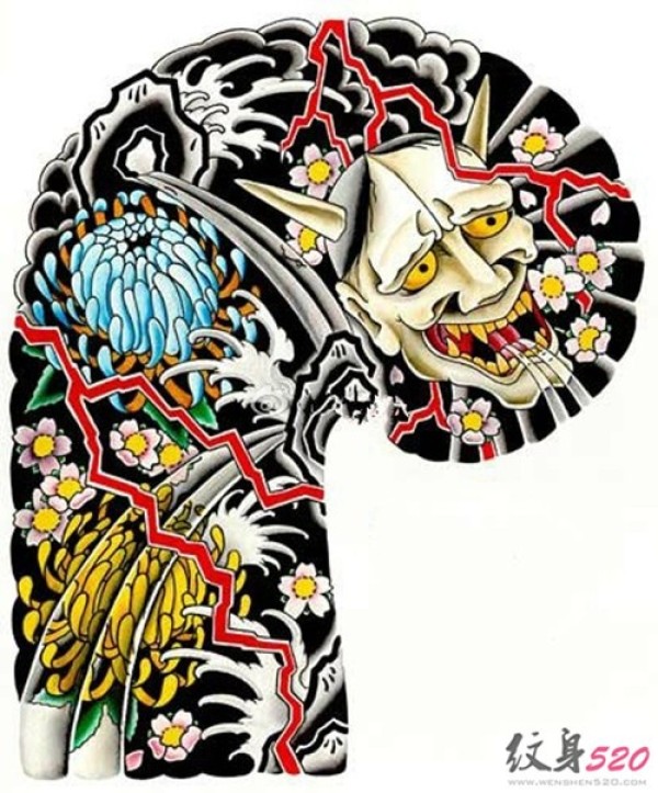 能面万媚纹身手稿_52张日式能剧面具纹身手稿图案素材欣赏