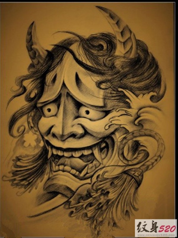 能面万媚纹身手稿_52张日式能剧面具纹身手稿图案素材欣赏