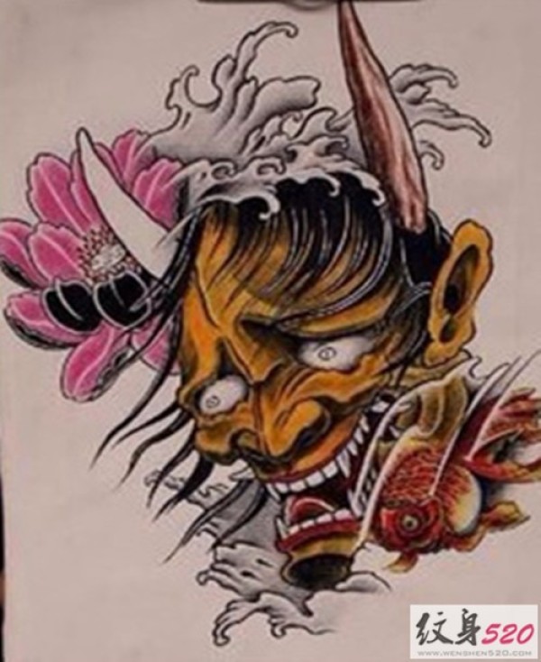 能面万媚纹身手稿_52张日式能剧面具纹身手稿图案素材欣赏