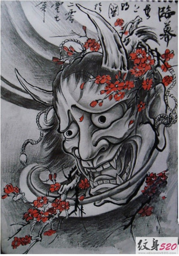能面万媚纹身手稿_52张日式能剧面具纹身手稿图案素材欣赏