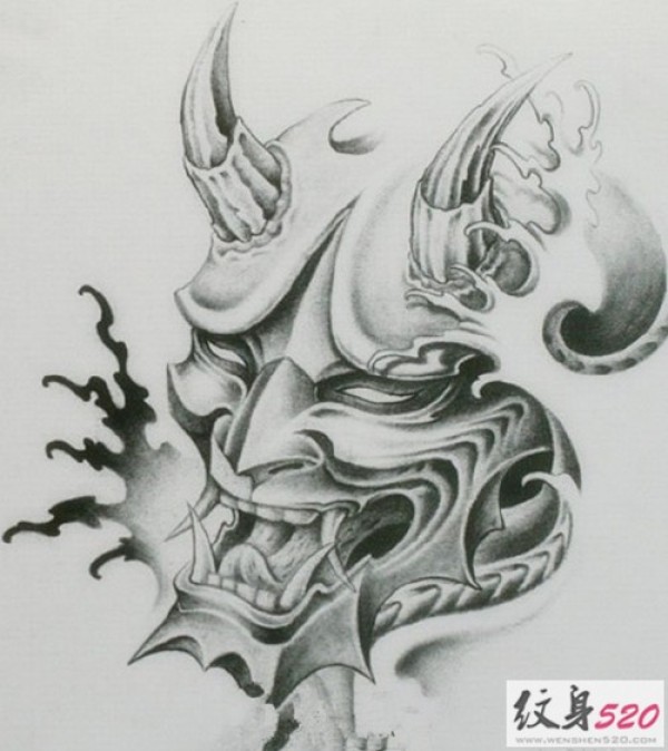 能面万媚纹身手稿_52张日式能剧面具纹身手稿图案素材欣赏